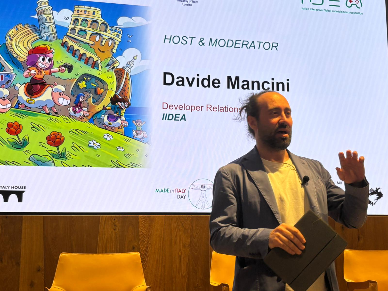 A conclusione si è svolta una discussione, moderata da Davide Mancini di IIDEA, centrata sulle prospettive future dell’industria videoludica, con uno sguardo privilegiato rivolto all’offerta creativa italiana e alle potenzialità del mercato britannico, il principale d’Europa per vendite e opportunità. Vi hanno preso parte Luisa Bixio (CEO di Milestone), Marco Minoli (Director of Publishing di Slitherine) e Leo Zullo (Managing Director di Wired Productions).